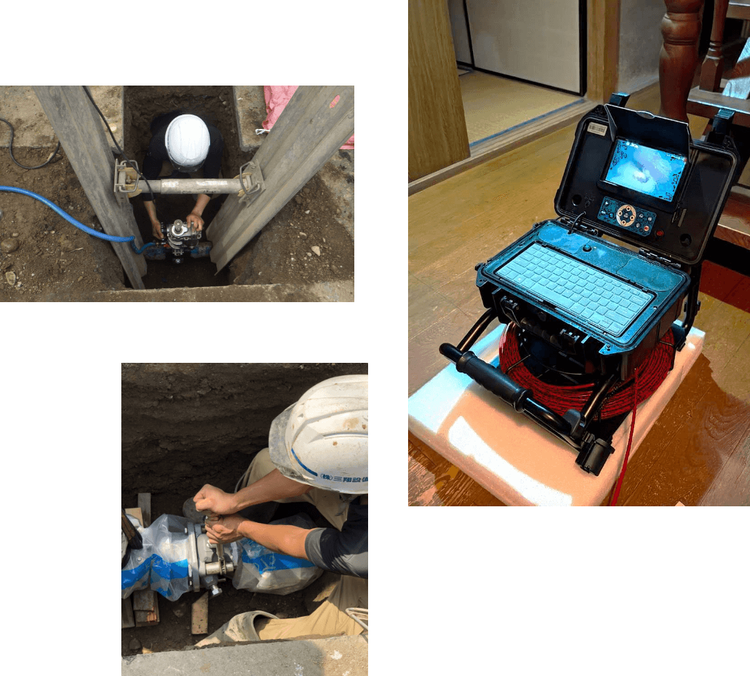 三翔設備工業は、ライフラインを支える水道・下水道・配管・土木工事のプロ集団です。